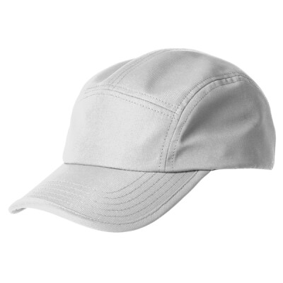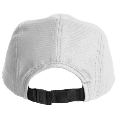 100% polyester; Runner style; Unique panel design; Precurved bill with self-fabric binding; Adjustable webbing strap with technical buckle closure;