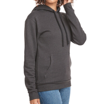 7.4 oz., 30 singles; 60% cotton, 40% polyester brushed back heathered fleece; Note: The Polyester content is transitioning to Recycled Polyester. Mixed inventory may occur.; Jersey-lined hood, dyed-to-match; Tonal drawcord; Self 3/8" back neck binding; Inside neck patch for printable label, dyed-to-match; 1x1 ribbed cuffs and waistband; Front pocket; Side seam; Tear away label; Regular fit; Cotton heavy face to provide ease of printability and breathability; Part of the Beach Fleece collection, keep it casual cool with laid-back apparel; Next Level Apparel has a recycling program for all fabric waste collected from the cutting process. All fabric scraps are sent to a recycling company that cleans and processes them to be used for cushion filling, rugs, etc. To date, 24.3M pounds of fabric have been recycled.;